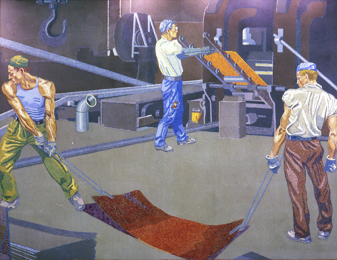 A series of mosaics, made from laser-cut Formica laminate, a famously durable laminate invented in Cincinnati, OH. Each piece depicts industrial interiors in the Cincinnati region and the diversity of Cincinnati’s workforce.Learn More