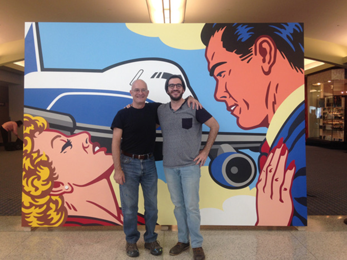 In December 2016 local artists, and father and son duo, Kevin T. and Jack Kelly, and in partnership with BLDG preformed live art-making in Concourse B. The result, two postmodern pop murals entitled Love is in the Air and Love is in the Air 2, still on display at CVG.